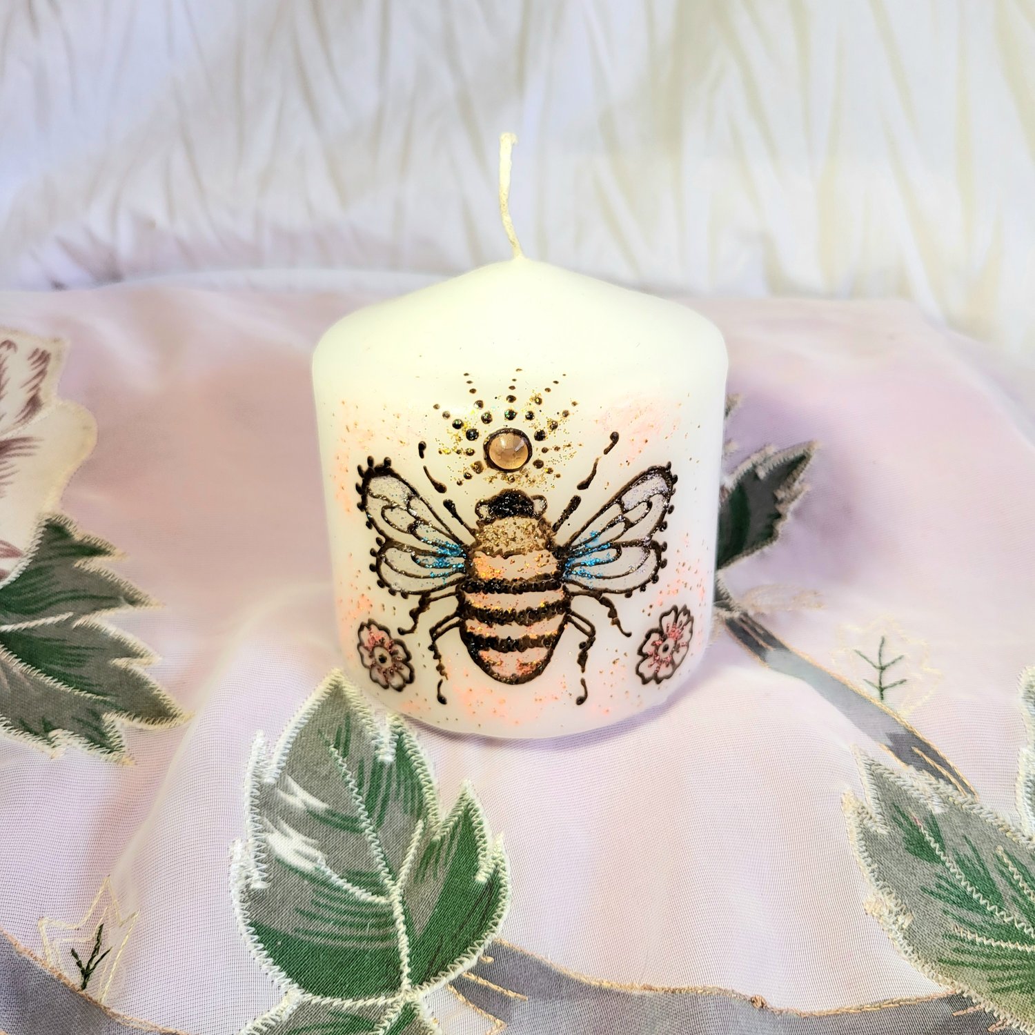 This 3 x 3 hand decorated dripless Henna candle will hollow out as it burns so you can save the design!
